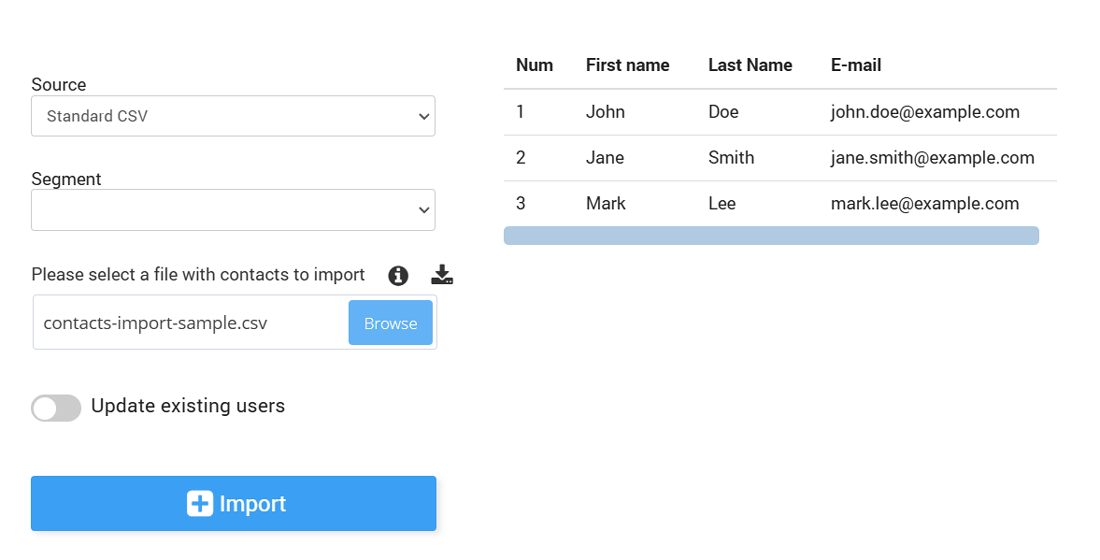 This is especially useful for onboarding contacts from legacy systems, email lists, or third-party platforms.