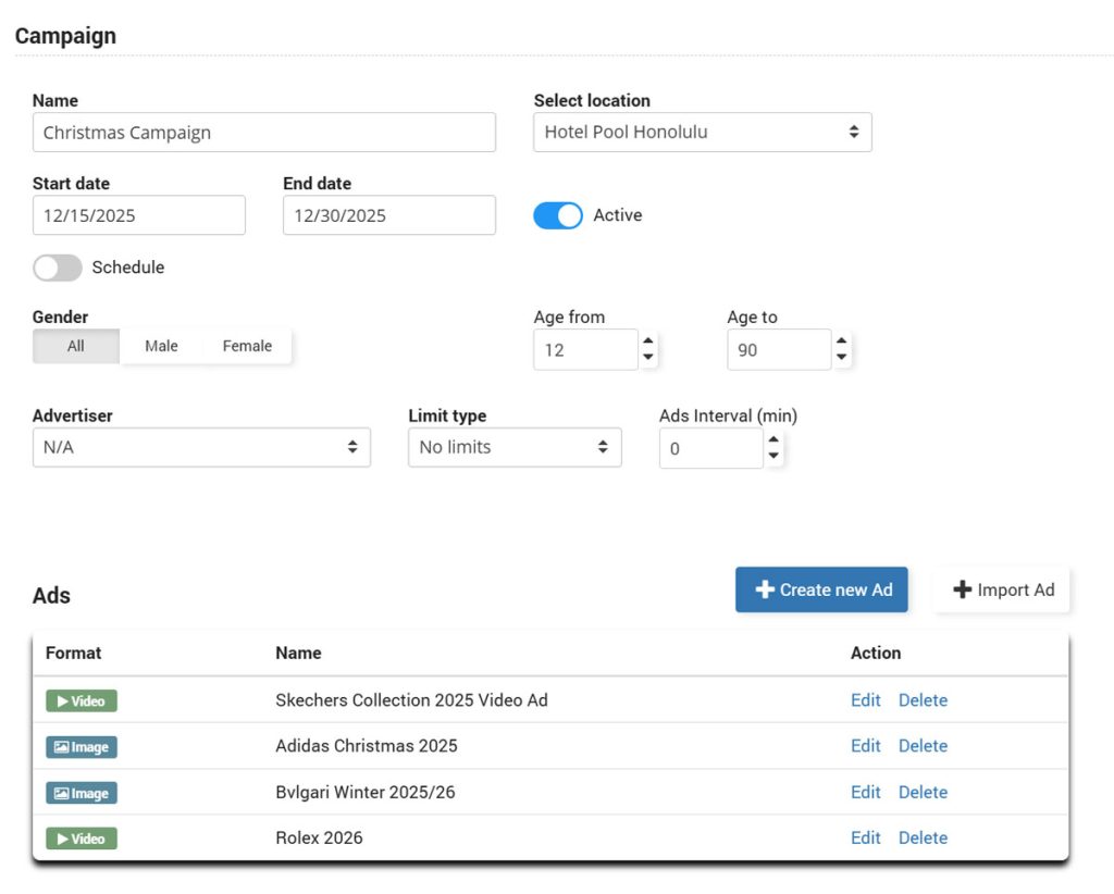 Whether you’re promoting your own services or displaying third-party advertisements, Cloud Station offers flexible control over where content appears, with scheduling options for time-sensitive promotions.