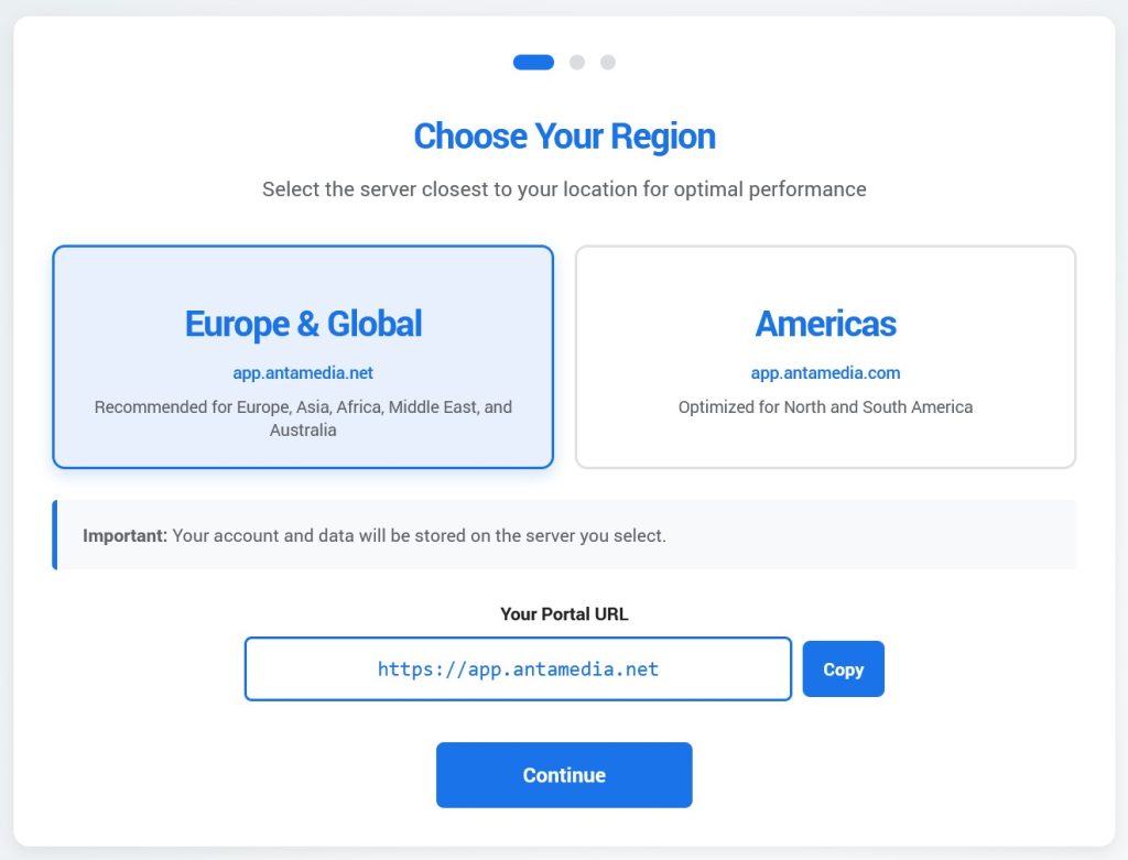 Once the Antamedia Cloud account is activated, you will proceed with the Onboarding.